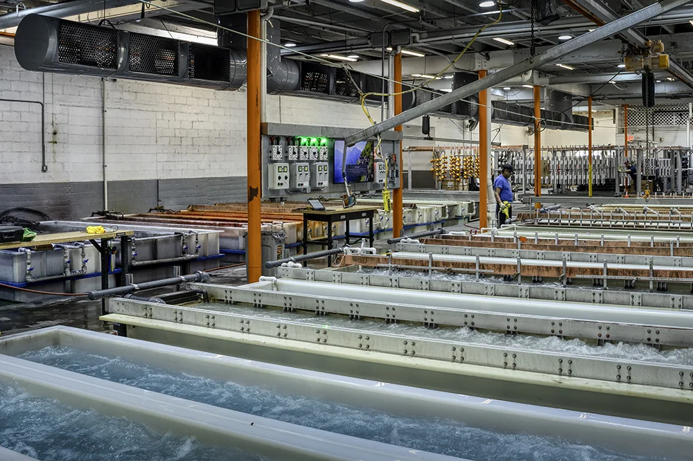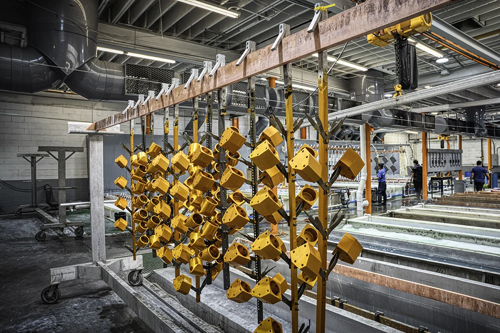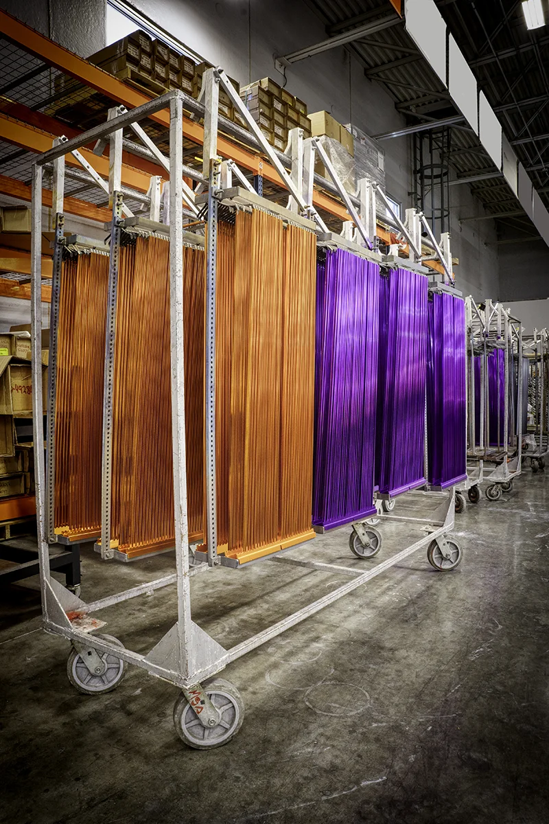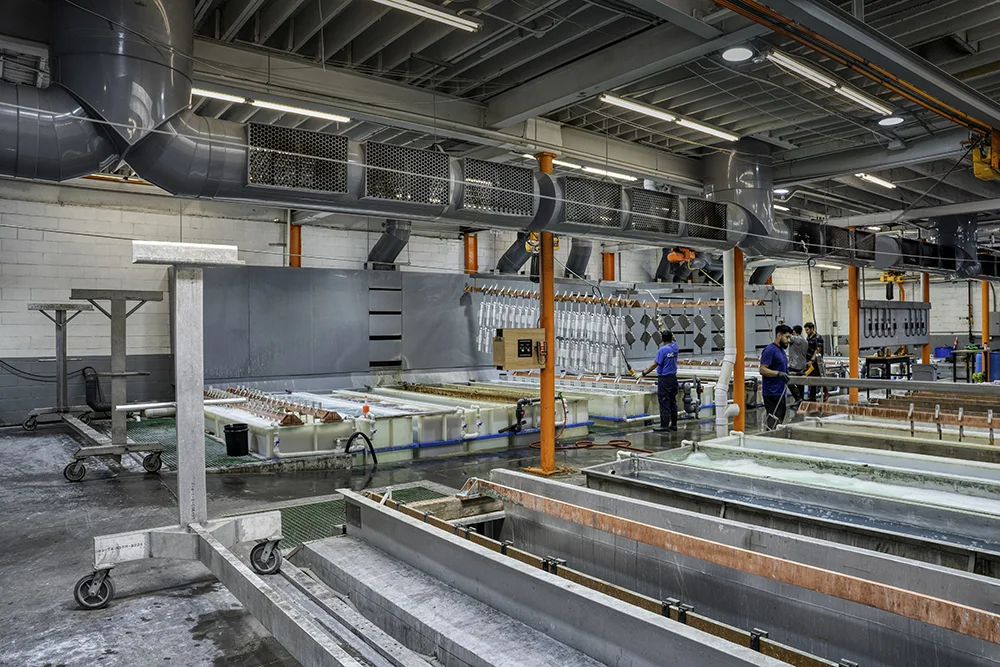 Chicago Anodizing’s state-of-the-art 70,000 square foot facility in the Garfield Park neighborhood of Chicago, Illinois features two full-service anodizing lines. Combined with an additional 60,000 square feet of manufacturing / processing space, our total 130,000 square feet of manufacturing, includes warehousing (raw and finished goods), shipping/receiving, racking, packing, laser marking, testing, mechanical finishing, and robotic processes to create a unique environment in which our company can consistently meet and exceed our customers’ expectations for on-time delivery and consistent quality of every shipment.